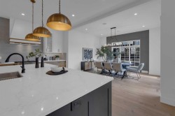 Welcome to this stunning home located in the highly sought-after community of Coopers Crossing! Boasting excellent curb appeal and backing onto a beautiful green space, this home is ideally situated close to schools, shopping, and major roadways.The main floor features 10' ceilings and engineered hardwood throughout, creating a bright and upscale feel. You will find a private front office, a spacious family room with built-in shelving, a cozy fireplace, and an impressive open-to-above design. An elegant dining area that opens onto a large deck with a BBQ gas line—perfect for entertaining. The chef’s kitchen is truly a dream, offering built-in appliances, a large island, quartz countertops, and plenty of cabinetry. A convenient mudroom off the garage and a stylish powder room complete this level.Upstairs, you are welcomed by a spacious bonus room, two secondary bedrooms with built-in shelving, a shared bathroom, and a thoughtfully located upstairs laundry room. A standout feature of this home is the built-in desk space and wet coffee bar in the common area on the second floor—a rare and highly desirable find that adds both character and convenience. The luxurious primary suite showcases a tray ceiling, a spa-inspired ensuite with dual vanities, a standalone tub, a steam shower, and a generous walk-in closet.The fully finished basement provides even more living space, featuring a wet bar, a large recreation room, and an additional flex area that is perfect for a fitness space or games area. You will also find a large bedroom and a full bathroom. Elegant lighting, beautiful woodwork, and large windows throughout the home create a warm, inviting atmosphere and flood the space with natural light. There are also plenty of closets and storage spaces thoughtfully placed throughout the house for added convenience.The oversized triple tandem garage is insulated, finished to paint grade with textured ceiling, and features high ceilings designed to accommodate a car lift, offering plenty of room for vehicles and storage. This remarkable home is truly a must-see!
