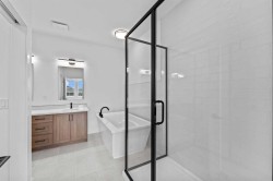 Welcome to Acadia Villas, a rare collection of just 40 exclusive bungalows in the sought-after Cooper's Crossing neighborhood. This gated community offers discerning homeowners a unique opportunity to live in luxury and privacy. Each meticulously crafted bungalow, this 1,400-square-foot model, features a stunning open-concept design. Soaring 14-foot vaulted ceilings create an expansive, airy feel throughout the main living area. This home includes one bedroom, a den, two bathrooms, a back hall, and a convenient laundry room area. The primary bedroom is a true sanctuary with its own tray ceiling, while the luxurious five-piece ensuite is a spa-like retreat, complete with a walk-in shower, an elegant freestanding soaker tub, separate shower and double sinks. High-end finishes are evident throughout, including sleek quartz countertops with undermount sinks, durable luxury vinyl plank flooring, and elegant tile in all bathrooms. For those who need more space, the unfinished basement offers endless possibilities. It's a blank canvas ready for you to create additional bedrooms, an expanded living area, or a personalized recreational space.