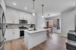 Welcome to your move in ready dream home! This stunning 1867 sq ft duplex offers 4 BEDROOMS and 3 FULL BATHROOMS, complete with a DOUBLE ATTACHED GARAGE for your convenience. Enjoy privacy with NO NEIGHBOURS BEHIND and future BACKYARD ACCESS to a scenic upcoming WALKWAY. Thoughtfully designed with a MAIN FLOOR BEDROOM AND FULL BATH, plus a SIDE ENTRANCE AND UPGRADED TO 9-FOOT ceilings for future basement development opportunities. The LIVING ROOM features an impressive OPEN TO ABOVE ceiling, creating a bright and airy space perfect for entertaining. The spacious kitchen boasts an UPGRADED GAS STOVE and a BBQ GAS LINE extended to the BACKYARD, ideal for hosting summer gatherings. Upstairs, The spacious primary bedroom is your private retreat, featuring ample natural light and room for a king-sized bed. The luxurious ensuite includes a walk-in shower, modern fixtures, and generous vanity space — perfect for relaxing after a long day. Whether you're getting ready for work or unwinding in the evening, this well-appointed ensuite offers both comfort and style you'll also find a cozy bonus room, perfect for family movie nights. BONUS: This home comes with incredible extras — all INCLUDED IN THE PRICE!Queen bed with hydraulic lift-up storageKing bed with hydraulic lift-up storageQueen mattress (double-sided Euro top & tight top)King mattress (double-sided Euro top & tight top)Office table & chairDining table with chairsSamsung 70” TVHome still has 9 yr of New home warranty left including for material and labour. Move in and enjoy the comfort, space, and value this home has to offer!