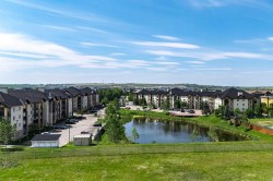 Unique chance! Experience the best of Downtown Airdrie living in this exceptional unit! Boasting 1,055 square feet of meticulously renovated space, this 2nd-floor condo offers an incredible opportunity. From the moment you step inside, you'll be captivated by the abundant natural light streaming through the expansive windows, creating an airy, open feel throughout the day. As one of the largest floor-plans in the entire development, this unit provides generous living and dining areas, seamlessly flowing into a stylish, functional kitchen. Home chefs will appreciate the upgraded wood cabinetry, sleek stainless appliances, and a convenient breakfast bar – perfect for entertaining or casual meals. This thoughtfully designed condo features two spacious bedrooms, including a primary suite with a walk-through closet and a private 3-piece ensuite. A second full 4-piece bathroom and a versatile den (ideal for a home office, gym, or quiet retreat) offer ultimate flexibility.The large living room with a gas fireplace leads to the spacious private balcony with gas barbecue hook ups and a fantastic view of the park! Enjoy the comfort of in-suite laundry and storage! The balcony includes a gas hook up for your BBQ and no building behind you for privacy. Adding to the convenience are two parking stalls: one titled, underground and heated, and another surface stall directly in front of the building. Located in a highly sought-after, well-managed complex with ample visitor parking, you'll enjoy quick access to walking paths, schools, shops, public transit, and major routes. This bright, inviting space is truly a must-see! Schedule your private showing today!