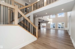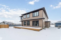 Stunning brand new luxury home in Beaumont, W/over 5,200 sq/ft. of finished living space, a massive triple attached garage, located on a premium corner lot offering a huge yard W/ potential RV parking along the side. This beautifully designed home delivers with a bright open main floor featuring a chef’s kitchen with large island and walk-in pantry, spacious living room, main floor bedroom W/ ensuite, & front study. Upstairs offers four generous bedrooms w/ 1 ensuite, open-to-below design, a spa-inspired primary 5 pce ensuite, laundry Rm. The separate side entrance leads to a full 900+ sq/ft 2-bedroom basement legal suite, dining area, large living room, and full bathroom, perfect for extended family or income potential. The basement also includes additional luxury living space for the owners above including a pet Spa! Offering flexibility rarely found in new builds. A prime opportunity for multigenerational living with exceptional parking, space, and modern design W/ tons of upgrades! BRING ALL OFFERS!