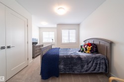 Modern Living in Dansereau Meadows. Step into luxury with this custom-built Greta home in the heart of Beaumont’s desirableDansereau Meadows.Boasting 3 spacious bedrooms,2.5 bathrooms, and over 2,300 sqft of beautifully crafted living space,this property blends comfort, style,and functionality. Key Features: Double attached heated garage (insulated & drywalled) with side entry. Gourmet kitchen with upgraded 1 ¼” quartz countertops, undermount sink, XL island, stainless steel appliances, soft-close drawers, tiled backsplash & walk-through pantry. Gas lines to kitchen & reardeck for easy BBQ setup - Coffered ceilings, luxury vinyl plank flooring & electric fireplace. Bonus room with tray ceiling & custom faux wood blinds.Triple glazed windows main & upper.HRV system & high-efficiency furnace.Fully landscaped & fenced yard with pressure-treated deck. 9’ ceilings on the main floor and basement for an airy, open feel. Located in a community known for its French-inspired architecture, close to all amenities.