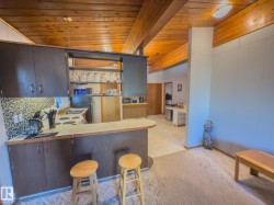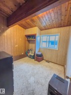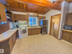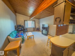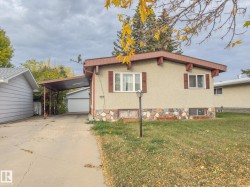 Welcome to this unique home built in 1972, full of character and potential. Featuring vaulted ceilings with exposed beams, this property offers warmth and charm the moment you step inside. The main floor includes a bright living area, functional kitchen, convenient main-floor laundry, 2 comfortable bedrooms and a 4-piece bathroom, Downstairs, you’ll find 2 additional bedrooms, a half bath, and plenty of space for Rec room or a family room. Outside, the home offers a double detached garage, a carport, and ample parking for vehicles or recreational toys. With solid bones and timeless design elements, this property is perfect for anyone looking to add their personal touch and create their dream home
