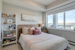 A rare corner-unit retreat where oversized windows fill every room with natural light. This bright and spacious 3-bedroom, 2-bath condo features an open layout that flows seamlessly onto a large private balcony — perfect for morning coffee, evening gatherings, or simply enjoying the community views. Everyday living is made easy with a titled underground parking stall and the convenience of in-suite laundry, offering comfort in every season. Inside, modern design meets thoughtful detail: high ceilings and luxury vinyl plank flooring create a stylish backdrop, while the kitchen showcases quartz countertops, full-height soft-close cabinetry, stainless steel appliances, and an inviting eat-up bar for effortless entertaining. The primary suite is a private haven with a walk-through closet and ensuite, while two additional bedrooms and a 4-piece bath provide flexible options for family, guests, or a home office. Beyond your front door, the community enhances daily life with scenic pathways, playgrounds, and nearby golf courses. On-site amenities such as a pet spa, residents’ lounge, and secure bike storage add convenience and connection. This exceptional corner home combines natural light, modern finishes, and community amenities in one of Wolf Willow’s most desirable layouts.
