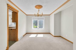 Welcome to Hamptons – where timeless charm meets family comfort. Tucked into a peaceful cul-de-sac and backing onto landscaped green space, this home offers over 3,000 sqft of total living area. As you step through the front door, the freshly painted main and upper floors invite you into a formal living and dining area, bathed in sunlight. Whether it's a family gathering in the bright breakfast nook or cozy evenings by the gas fireplace in the family room, the main level offers space to connect and unwind. The kitchen features stainless steel appliances, a walk-in pantry, and a brand new stove (2025)—perfect for everyday cooking or weekend hosting. Upstairs, you’ll find a spacious den, two generous bedrooms, and a large primary retreat complete with jetted tub, dual sinks, and walk-in closet. The bright basement includes a full bathroom, flexible rec room, and plenty of space for home gym, ping pong, or your next media setup. Notable upgrades include a concrete tile roof (2014), a Garage door (2017) and numerous window replacements (2020) to ensure peace of mind for years to come. Enjoy walking distance to top-ranked schools like Tom Baines & Sir Winston Churchill High, plus quick access to Stoney Trail, Costco, and local parks. This home blends warmth, functionality, and location—your next chapter begins in Hamptons.