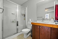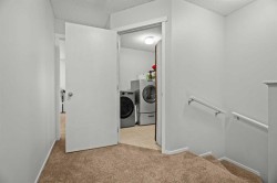 Welcome to this bright and beautifully spacious townhome in the heart of Copperfield! Perfectly positioned near schools, shopping, parks, and all amenities, this home blends comfort, style, and convenience in one inviting package. Backing onto a tranquil green space, it has been freshly painted with new appliances. The main floor boasts a functional open-concept layout featuring a large, sun-filled living room, a generous dining area, and a well-appointed kitchen with abundant cupboard, counter, and pantry space—ideal for both everyday living and effortless entertaining. Expansive windows frame peaceful views of the green space, filling the home with natural light. A conveniently located half bath completes this level. Upstairs, you’ll find two spacious primary suites, each offering its own private ensuite and oversized walk-in closet. The large laundry room is perfectly situated between the bedrooms and provides additional storage options. The finished basement offers fantastic flex space for a gym or whatever you wish and leads directly to the large attached double garage. The driveway provides room for two more vehicles, giving you plenty of parking. This well-maintained townhome is an exceptional choice for first-time buyers, investors, or families seeking space, functionality, and a prime location. Book your showing today and come experience all it has to offer!