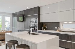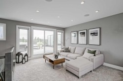 Step into sleek, modern luxury with this stunning custom-built home where crisp, clean lines and high-end finishes create a show-stopping impression inside and out. The main floor features a striking 24x24 tile throughout and an open-concept layout drenched in natural light from oversized, metal-clad windows.The chef-inspired European kitchen is a true centerpiece—complete with quartz countertops, a waterfall island, and premium Bosch & Miele appliances. Entertain in style, and don’t miss the jaw-dropping 2-piece powder room—guests will talk about it long after they leave! Upstairs, you’ll find two spacious bedrooms, a full laundry room, and a breathtaking primary retreat.Wake up to panoramic city views from bed, then indulge in your spa-like ensuite featuring a double vanity, oversized jetted tub, custom steam & rain shower with body jets, and heated tile floors. A custom walk-in closet completes the dream. The third-floor bonus room offers an additional oasis with even more incredible city views and a sunny south-facing balcony—plus, yes, there’s a bathroom on every level!The walkout basement is equally impressive, boasting in-floor heating beneath plush carpeting, a cozy fourth bedroom, a den, a beautifully finished storage area, and a rec room/TV area complete with a full bar—perfect for game nights and movie marathons