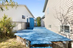 Step into comfort, style, and convenience with this beautifully maintained, fully developed 4-level split, perfectly tucked away on a quiet cul-de-sac in the sought-after community of Coventry Hills. This home shows true pride of ownership and comes with major updates for your peace of mind, including a new roof (2025), vinyl siding (2025), main living room windows (2025), high-efficiency furnace (2025), quartz countertops (2019), flooring (2017), washer/dryer (2023), and exterior railing (2016).Step inside through the welcoming foyer with large closets, leading directly to a comfortable living room featuring vaulted ceilings for an open, airy feel — perfect for relaxing or entertaining. From there, flow into the updated kitchen with modern appliances, ample storage, quartz counters, and a bright dining area ideal for gatherings. Upstairs, discover two generous bedrooms and an updated four-piece bathroom.Descend to the third level for a cozy TV room with a fireplace, a second living area, a third bedroom, and a convenient three-piece bath. The fourth level offers even more functionality with a large mechanical room, laundry area, and extra storage — including space for an office, hobby room, or potential fourth bedroom.Step outside to your charming backyard retreat, boasting a spacious multi-level deck ideal for outdoor entertaining, complete with privacy screens, a BBQ area, and a side door easy access from the home. Enjoy mature trees providing natural shade, a convenient storage shed, and a paved back alleyway with additional parking at the back, plus garage potential (subject to city approval). A welcoming front verandah and front lawn add to the home’s curb appeal.Located just steps from elementary schools and close to junior and senior high schools, shopping, dining, golf, transit, the Vivo recreational Centre, and major routes, this home truly has it all.Don’t miss your chance to make this wonderful property yours — schedule a showing today!