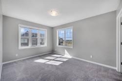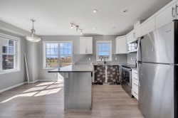 Welcome to 341 Cityscape Court NE, Calgary – a stunning end-unit townhouse that perfectly combines modern style, functional design, and an unbeatable location directly across from green space in the vibrant community of Cityscape. Offering over 1,500 sq. ft. of developed living space with 3 bedrooms and 2.5 bathrooms, this home is an ideal choice for first-time buyers, young families, or investors. The main living area is bright and open, designed for both entertaining and everyday comfort. The sleek kitchen features stainless steel appliances, quartz countertops, and ample cabinetry, flowing seamlessly into the dining area and spacious family room, with a convenient 2-piece bathroom completing this level. Upstairs, the primary bedroom offers a large walk-in closet and a private 4-piece ensuite, while two additional bedrooms, a full bathroom, and upper-floor laundry provide practicality and ease for family living. As an end unit, this home enjoys extra windows, abundant natural light, and enhanced privacy. The attached single garage with driveway allows for parking for two vehicles, while the balcony provides the perfect spot to relax and enjoy your morning coffee or evening breeze. Families will love the green space and playground just steps away, while the low monthly condo fee of $367 includes snow removal, landscaping, insurance, and more, ensuring stress-free living. With shopping, parks, schools, transit, and major roadways all nearby, Cityscape is one of Calgary NE’s most sought-after neighborhoods. Move-in ready and beautifully maintained, this home is waiting for you—schedule your private showing today!