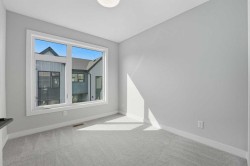 This home, constructed by Logel Homes—an award-winning builder recognized as Calgary's most decorated multi-family developer—is situated in Sage Hill and offers a blend of quality and functionality. The residence is thoughtfully designed for both comfort and convenience. It includes four bedrooms and 2.5 bathrooms, providing ample space for families or guests. The southeast-facing orientation ensures abundant natural light throughout the home, enhanced by oversized windows and 9-foot ceilings on the main level. Residents enjoy breathtaking views overlooking an environmental reserve, bringing a sense of tranquility to everyday living. High-quality finishes are featured throughout, including full-height cabinets, elegant quartz countertops, beautiful, upgraded lighting fixtures, and stainless-steel appliances. Both a front patio and a covered rear deck extend the living space outdoors, perfect for relaxation and entertaining. This home is ready for possession and comes with no HOA fees, providing added value and flexibility for future homeowners. This house shows 10/10. Don’t miss your chance to call it yours!
