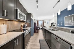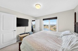 Discover this stunning End-Unit Townhouse in Nolan Hill, backing onto a peaceful Pond, Green Space, and Walking Paths—no neighbors behind! This home features 3 Bedrooms, 2.5 Baths, and 1,546 sq. ft. of thoughtfully designed living space.Step into the Main Floor with 9’ ceilings and gleaming hardwood floors throughout the Open-Concept Layout. The Kitchen showcases a Central Island, Raised Eating Bar with Quartz Countertops, Stainless Steel Appliances, plus a convenient Pantry. The Living Room includes a Juliet Balcony, while the Dining Area opens onto a Balcony with Gas Hookup, perfect for BBQs while enjoying serene Pond views. A Half Bath with Window completes the Main Level.On the upper level, the Primary Bedroom offers a Walk-In Closet, 3-Piece Ensuite with a standing shower and seat, and a large window overlooking the Pond. Two additional Bedrooms, one with a Walk-In Closet, share a 4-Piece Bathroom, and the Upper-Level Laundry adds practicality.Additional highlights include a Double Attached Tandem Garage with a rear room that’s perfect for a Gym or Workshop, plus Visitor Parking conveniently next to the unit. Within walking distance to Green Space Pathways, Shopping, and Public Transit, with easy access to Shaganappi Trail and Stoney Trail.Don’t miss this rare opportunity to enjoy Nolan Hill living at its finest!