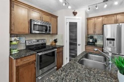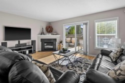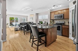 Open House Saturday Nov 8th 1-3:30 pm - Cranston Gem with NO CONDO FEES - This Beautifully maintained semi detached home that exudes pride of ownership is located in an unbeatable location. This bright open concept home boasts an excellent layout from the front foyer through the kitchen and dinning room and also to the living room that has sliding door to your sunny south facing back garden. There is direct access from the foyer to the garage which also has a man door through to the back yard. The kitchen has a very functional layout and showcased by granite counters and caramel coloured maple cabinets. The kitchen is finished with Stainless steel appliances, tiled back. splash and a corner pantry for those storage needs. The living room has a cozy gas fireplace, hard wood floors and a sliding door to a large composite board deck, mechanical retractable awning and metal spindle railings. You can enjoy the privacy form this fully fenced and sun filled, south facing yard. The side of the house has poured concrete walk ways to ease those winter chores. On the Second level of this house there are two spacious bedrooms, the first has twin closets and over looks the rear yard. The second bedroom has a large walk in closet and faces north. Between the two bedrooms is large spa like bathroom with a jetted tub and a stand alone tiled shower. The windows are adorned with Hunter Douglas blinds through out and for convenience there is a central vac system with attachments. On those hot summer days you will be able to sleep comfortable with the central air conditioning. The basement does have roughed in plumbing and is awaiting your design ideas to customize this home further for your needs. This home is conveniently situated in walking distance to Sobeys, restaurants and shops. Close by you have the Seton shopping centre and 130th avenue shopping complex, South Health Campus, Hospitals, transportation and 5 Schools in the area.