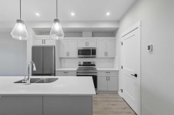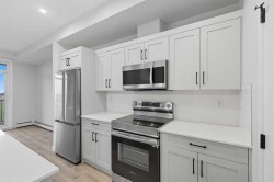 Perched on the TOP FLOOR in vibrant Seton, this two-bedroom, two-bath residence balances modern design with everyday ease. Inside, more than 700 square feet unfold in an airy, open layout framed by nine-foot ceilings and sunlight that moves across sleek flooring throughout the day.The kitchen is as functional as it is refined: crisp white cabinetry, stainless appliances, and a central island that doubles as a natural gathering point—whether for morning coffee or late-night takeout.Tucked away, the primary suite offers a calm retreat with its own private bath, while the second bedroom—paired with another full bathroom—gives flexibility for guests, a roommate, or a dedicated workspace. In-suite laundry, air conditioning, a titled parking space, and separate storage add quiet practicality to the home’s thoughtful design.Step out to your private balcony for a breath of fresh air and a glimpse of the surrounding community. Beyond the front door, Seton itself becomes part of your lifestyle: restaurants, cafés, the massive YMCA, and South Health Campus all just minutes away.This isn’t simply a condo; it’s a carefully composed space that makes style and convenience feel effortless.