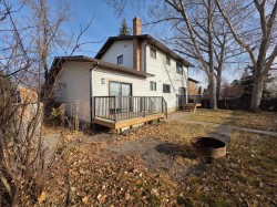 Beautifully Renovated 2-Storey Home with Spacious Yard and No Rear Neighbours!Welcome to this charming and versatile 2-storey home located on a quiet street, offering peace, privacy, and plenty of space for the whole family. The property features a huge front and backyard, with the backyard facing an open field. Enjoy your mornings or evenings on the new decks in both the front and back yards.Inside, the main floor welcomes you with a bright and inviting living room, an open concept kitchen with newer appliances and a full bathroom. There’s also an additional bedroom that includes it's own fireplace and private deck access as a guest room, or home office.Upstairs, you’ll find two cozy bedrooms, a full bathroom, plus a spacious master bedroom with an ensuite. This level also includes a second laundry room, complete with newer appliances for added convenience.The finished basement offers even more living space with a smaller living room, three additional bedrooms, a full bathroom and an extra laundry area.Other highlights include an oversized single garage, renovated bathrooms and kitchen, and a new roof installed just a few years ago.This home truly combines comfort, functionality, and privacy all in one beautiful package.