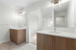 Every detail of this home is designed to elevate everyday living. Welcome to The Strathcona by Cedarglen Homes. A stunning four-bedroom laned home in the heart of Logan Landing, one of southeast Calgary’s most exciting new communities. Thoughtfully planned, beautifully finished, and built for the way modern families live. This home blends style, comfort, and flexibility in all the right ways. Step inside and feel the light pour in. The open-concept main floor flows effortlessly with luxury vinyl plank flooring throughout, setting a warm contemporary tone. The kitchen is the showpiece - where form meets function - anchored by a long quartz island perfect for meal prep, morning coffee, or casual conversations with friends and family. Sleek hardware and designer finishes add a touch of sophistication, while pot lighting keeps the space bright and inviting. You’ll also receive a $6,900 appliance allowance to personalize your kitchen at the builder’s supplier - a chance to make it truly yours. Just steps below, the great room rises with soaring ceilings, creating a sense of openness and drama ideal for entertaining or cozy nights in. The adjacent dining nook, framed by a large window, invites natural light and easy connection between indoors and out. Step onto the finished rear deck, ready for weekend BBQs, evening unwinds, or quiet mornings overlooking your private backyard. Upstairs, thoughtful design keeps life flowing smoothly. The primary suite is a serene retreat, featuring a walk-in closet and a spa-inspired ensuite with dual sinks and a tiled walk-in shower. Two additional bedrooms, a stylish full bathroom, and an upper laundry room bring everyday convenience right where you need it. Downstairs, the fully developed basement extends your living space with a spacious rec room - perfect for movie nights, a home gym, or a kids’ play zone. A fourth bedroom, another full bathroom, and a separate side entry add flexibility for guests, extended family, or even future rental potential. Logan Landing is Calgary’s hidden gem. Nestled along the Bow River valley, this community connects you to nature with walking trails, playgrounds, and endless outdoor spaces just beyond your doorstep. Here, neighbours still say hello, kids ride bikes till dusk, and the city’s best amenities are just minutes away. It’s where peaceful living meets everyday convenience - a place you’ll be proud to call home. Move-in ready and designed to impress, the Strathcona checks every box from curb appeal to comfort, from design to flexibility. Ready to experience it for yourself? Book your private tour today and discover why life feels better at Logan Landing. *Some photos are virtually staged.