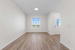 ** Move-In Ready | The Newport IV by Broadview Homes | 1,382 SqFt | 3 Bed, 2.5 Baths ** Welcome to the Newport IV by Broadview Homes — a beautifully designed brand new, move-in ready home offering 1,382 square feet of refined living space with 3 bedrooms and 2.5 bathrooms. Perfectly tailored for modern living, this home combines elegant finishes with functional design in a bright and open layout. The main level features 9’ ceilings that create a spacious, airy feel throughout. A sunlit Great Room welcomes you in and flows seamlessly into the dining nook and stylish kitchen. Thoughtfully designed for both everyday comfort and entertaining, the kitchen showcases a large central island, pot lights, and high-quality cabinetry by Wildwood Cabinets, complete with soft-close doors and drawers. The open-concept layout ensures effortless flow and connection between living spaces. Upstairs, the private primary bedroom offers a peaceful retreat with a walk-in closet and a well-appointed ensuite bathroom. Two additional bedrooms are generously sized and share access to a sleek main bathroom, while the convenient upstairs laundry makes everyday living even more effortless. Crafted with care and quality, this home includes high-efficiency, low-maintenance 100% vinyl windows, an engineered floor system, superior carpet, and a wide selection of luxury vinyl plank flooring and tile in all wet areas. An optional gas fireplace with tile surround adds warmth and style to the main living space. Designed with future potential in mind, this home is also ready for a legal basement suite (subject to city approval). It features a separate side entrance, 9’ basement ceilings, kitchen sink and laundry rough-ins, and a second furnace with HRV system—making it ideal for a mortgage helper or multigenerational living. Located in a desirable new community, this move-in ready home offers an exceptional opportunity to enjoy the quality, style, and peace of mind that comes with owning a brand new Broadview Home. Schedule your private showing today and experience the best of modern living!