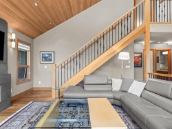 Perfectly positioned in South Canmore, this contemporary 4-bedroom, 4-bathroom duplex property combines timeless craftsmanship with a modern mountain aesthetic, offering refined design and everyday functionality in an exceptional location. From the moment you enter, every detail reflects quality. Site-finished white oak flooring, custom solid oak, open-riser stairs, and soaring clear fir vaulted ceilings set a warm and sophisticated tone. At the heart of the main level is a custom walnut kitchen designed for both daily living and entertaining. A spacious granite island anchors the space, while top-tier Sub-Zero and Wolf appliances, including a Sub-Zero wine and beverage fridge, Wolf induction cooktop, wall oven, and steam oven make this a chef’s dream. Practical luxury is everywhere: an Everhot water tap for instant tea, a Kinetico soft water and filtration system, a discreet built-in Hailo step ladder tucked into the base cabinetry, and thoughtful storage solutions that elevate functionality without compromising beauty.The dining area, framed by vaulted ceilings and large windows, feels open yet intimate, while the great room showcases a modern concrete gas fireplace and floor-to-ceiling windows that frame the mountains perfectly. Step outside onto the expansive deck, perfect for morning coffee, evening wine, or hosting guests against a backdrop of mountain views.The home features two beautiful and spacious primary retreats. The main floor suite is filled with natural light and has a stylish walk-in closet. It also offers a spa-inspired ensuite with dual sinks, a steam shower, heated towel bar, and a Toto toilet with bidet seat. Head up the stunning, open riser stairs to the second primary suite which offers a similar luxurious ensuite, with the addition of a deep soaker tub. On the ground level, a cozy family room offers the ideal spot for movie nights or game days, while a bright home office makes working from home effortless. A well-designed laundry room with abundant cabinetry, counter space, and a drying cabinet ensures that even chores feel streamlined. Completing this level are a fourth bedroom, a fourth full bath, and an epoxy-finished, heated double garage with ample space for all your mountain gear.Additional features such as new air conditioning, Vacuflow, and thoughtful built-ins throughout the home further enhance comfort and convenience. And outside your door, South Canmore’s best amenities await...Main Street, Spring Creek, Bridgette Bar and vibrant local cafés and shops are all just a short stroll away.