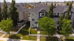 Start fresh in a home that blends comfort, convenience, and a coveted lakeside lifestyle. This bright and inviting 2-bedroom + office townhome offers more than just great space—it delivers unbeatable value with a rare titled surface parking stall and a single attached garage, all set in a prime location with west-facing lake views. Tucked within the sought-after community of Westmere, you’re just a short stroll from everything you need—grocery stores, coffee shops, restaurants, fitness studios, walking paths, and, of course, the lake itself. Whether you're running errands or catching sunset views by the water, everything is at your fingertips. Inside, the ground level welcomes you with a generous foyer and a flexible den that’s perfect for a home office, gym, or creative space. This level also features a convenient 2-piece bathroom and access to the garage. Up one level, the open-concept kitchen is a cheerful and functional hub with granite countertops, stainless steel appliances, a central island with breakfast bar seating, and sliding patio doors to your sunny west-facing balcony. The adjacent dining area flows seamlessly into the bright and airy living room—ideal for entertaining or quiet evenings overlooking the lake. Upstairs, two well-proportioned bedrooms offer privacy and functionality. The primary includes a 4-piece ensuite, while the second bedroom is steps from another full bathroom. You’ll also love the super convenient upstairs laundry area. Whether you're a first-time buyer, downsizer, or investor, this well-located and thoughtfully designed townhome is a rare find. Enjoy the space, soak in the views, and take advantage of a lifestyle that brings the best of Chestermere right to your doorstep.