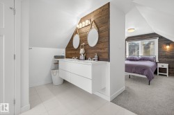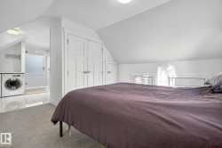 Exceptional Parkallen Home, fully renovated in 2016! This rare gem features an open-concept main floor with a spacious kitchen boasting extensive countertops and a full-sized pantry flowing into the dining and living areas with an oversized picture window. The main floor includes a full bedroom and bathroom for convenience. The upper level showcases a stunning primary suite complete with upper-level laundry, luxurious walk-in tile shower, dual vanity, and a generous bedroom with built-in storage. LEGAL BASEMENT SUITE offers excellent mortgage-helper potential! One-bedroom suite features open-plan living, an island kitchen with a pantry, a separate laundry, and a spacious bedroom with a desk area. Enjoy the beautifully landscaped south-facing backyard and newer double detached garage. Recent updates include furnace (2018) and sewer line (2015). Prime location steps from U of A campus, Whyte Avenue's vibrant scene, and picturesque Parkallen Park. Experience the best of South Central Edmonton.