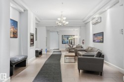 Enjoy downtown views from this move in ready condo in Vivacity, perfectly located near downtown, public transit, the river valley trails, shopping, restaurants, and the U of A. This modern open-concept suite features 9 ft ceilings, granite countertops, white cabinetry, stainless steel appliances, a kitchen island, and maple engineered hardwood flooring. The bright living area offers north and east exposures plus a gas BBQ hookup on the balcony. Recent upgrades include new carpet in the bedroom and a new furnace for added comfort. Included are the fridge, ceramic top stove, built-in microwave, dishwasher, in-suite washer & dryer, window coverings, and A/C. Comes with titled underground parking stall #96 on P1. Condo fees include heat, water, power, and access to building amenities: a rooftop patio with panoramic views, fitness room, and event room. A must-see condo offering modern living and unbeatable downtown convenience!