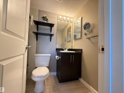 Welcome to this well maintained GROUND FLOOR CORNER UNIT in the sought after community of Crystallina Nera West.This condo offers excellent convenience w/ a private balcony that provides access outside-ideal for pet owners, seniors, or anyone who prefers step-out entry.The functional layout includes a flex space that can be used as home office or personal work area.The unit features 2 bedrooms, including a primary suite w/ 3 piece ensuite & walk-in closet.The 2nd bedroom is well-sized, in-suite laundry that adds valuable convenience & privacy.Additional features; portable A/C & select furniture available for inclusion(excluding living room wall decor & 1 patio box),titled underground parking located directly across the elevator & a storage just in front of the stall.This location is ideal for families & commuters.Proposed K-9 public school is about 10 minute walk, nearby bus stop for quick access to transit.Near shopping centre, parks, walking trails & Henday. Ideal for first-time-buyers or investors.