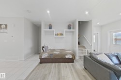 Location! Location! Welcome to this beautiful, modern, facing a peaceful GREEN SPACE and spacious move-in-ready townhouse in highly sought-after Laurel. This home offers 3 bedrooms, 2.5 baths, a finished basement with tile flooring, and a flex space perfect for an office or storage. Enjoy upgrades such as quartz countertops, a large kitchen island, pot lights, electric fireplace, vinyl & tile flooring, 9 ft ceilings, and a double attached garage. The open-concept layout provides comfort and style, while upstairs you’ll find convenient laundry near all bedrooms. The basement adds extra space and ample storage. Located in a fully developed community with nearby amenities including parks, playgrounds, schools, Rec Centre, walking trails, transit, and easy access to Anthony Henday. Bus stop is just steps from your door. Move-in ready and perfect for families or professionals—don’t miss out on this stunning home!