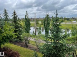 * FACING LUXURIOUS LAKE VIEW*Terwillegar's luxury 2 bedrooms and 2 bathrooms condo built by ABBEY. the kitchen has a granite counter top and a lot of cabinets. Spacious bright Living room come with Air Condition. Master bedroom with walk through closet and 3 piece ensuite. Second good size bedroom with 4 piece bathroom just outside the door. Relax outdoor on a patio Facing the POND and Walkway. In-Suite Laundry .Video Underground Parking . Stainless Steel appliance . Close to school, mall, Anthony Hendy, White mud Freeway and all amenities. Underground parking and storage are included. *Parking stall no 120*