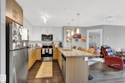 For Investors, Leased till 2026 Aug for $1950/month. 884 sqft (builder measurement) two bedrooms and two full baths. The Unit has one underground parking, and the condo fee covers all the utilities (Electricity, heat, water, sewer, snow removal and many more). It is suitable for the downtown commuter. The Unit has a balcony with a nice view and a natural gas outlet for your BBQ set. Parks, shopping stores and playgrounds are nearby; Clareview Community Recreation Centre is beside the condominium. The building is quiet and clean. The kitchen offers plenty of cabinets with an open concept. The primary bedroom has a walk-in closet and a 4pc ensuite bathroom. The secondary bedroom is generous in size and located on the other side of the living room. The in-suite laundry room has a front-facing washer, dryer, and storage space next to the second 4pc washroom. It is a few minutes from the Clareview LRT transit and Bus station. There is easy access to Anthony Henday and Yellowhead Trail, Belmont Shopping.