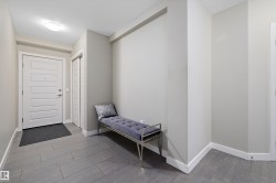 Stylish condo living in one of Windermere’s most desirable buildings! This spacious 2-bedroom, 2-bath home offers over 900 sq ft of well-designed living space and sits just minutes from shops, restaurants, and everyday conveniences at The Currents of Windermere. A bright, welcoming entry leads into an open layout with warm hardwood floors. The kitchen features granite countertops, ample cabinetry, and stainless steel appliances, perfect for cooking and entertaining. The living and dining areas connect seamlessly, creating a comfortable main gathering space. Both bedrooms are generously sized, with the primary offering a 3 pc ensuite. Added perks incl in-suite laundry, plenty of closet space, titled underground parking stall & titled storage. Step outside to a rare wrap-around patio—ideal for relaxing, container gardening, or entertaining friends. Well-kept and move-in ready, this unit is ideal for first-time buyers, downsizers, or investors looking for a quality home in a prime community.