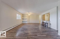 Welcome to The Wiltshire a lovely 18+ building on a quiet street! This bright TOP FLOOR corner unit offers 1,130 sq.ft. of open, comfortable living space. Enjoy newer laminate flooring and fresh, modern paint throughout. The kitchen, dining, and living areas connect seamlessly, highlighted by a cozy gas fireplace. Step through sliding doors to an oversized balcony overlooking a quiet, tree-lined street, complete with BBQ gas hook-up. The spacious primary suite features a 4-piece ensuite, walk-in closet, and extra his-and-hers storage. The second bedroom sits beside another full bath—perfect for guests or office space. Added perks include in-suite laundry, 3 x A/C wall units, heated underground parking, and a secure 18+ building near Whyte Ave, U of A, shopping, and transit.