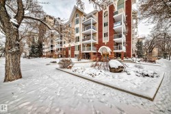 TOP FLOOR | FULLY RENOVATED | DOWNTOWN + RIVER VALLEY LIFESTYLE Live at the edge of the River Valley in this beautifully upgraded 2-bed, 2-bath condo in Victoria Promenade. This move-in-ready top-floor unit features a $30K custom kitchen makeover with stainless steel appliances, tile backsplash, and soft-close cabinetry. The open layout is filled with natural light and offers 9’ ceilings, new flooring, paint, and trim throughout. Enjoy downtown views from your private balcony, a gas fireplace for cozy evenings, and 2 full bathrooms with excellent separation between bedrooms. Includes 2 secure underground parking stalls (tandem) + storage. Pet-friendly building with rare amenities like a woodworking crafts room, games lounge, and more. Condo fee includes heat, water, reserve fund, exterior maintenance, snow removal & management. Quiet, well-run building just steps from the Promenade. Nothing to do but move in! (photos digitally staged or modified)