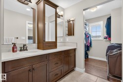 Stunning 1826 sq. ft. 2 storey family home with fully finished basement in the sought after community of McConachie is a must see! This immaculately maintained home offers many upgrades including hardwood floors, quartz counter tops in kitchen and bathrooms, custom Built ins, custom built in closets, custom California Closet in mudroom, under cabinet lighting, stainless steel appliances, jack and Jill master closet. 9’ ceilings on main and basement, 8’ ceilings on upper level. Finished basement includes an oversized recreation room and large storage room. South facing backyard providing an abundance of sunlight to fully enjoy throughout the day . Located on a quiet residential street with close proximity to schools and amentities.