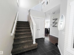 Welcome to Summerside, one of Edmonton’s most desirable lake communities, offering exclusive year-round access to Summerside Lake for swimming, paddleboarding, and kayaking. This beautifully maintained 2-storey home at 8008 18 Ave SW blends comfort, function, and thoughtful upgrades. The main floor includes a spacious foyer, private glass-doored den, stylish half bath, bright great room, and a chef’s kitchen with gas stove, pantry, and ample storage. Upstairs offers 3 bedrooms, including a primary suite with laundry access, plus a large bonus room. Enjoy central A/C, water softener, central vac with hide-a-hose on the main floor, a landscaped yard with in-ground irrigation, shed, and maintenance-free deck. The attached garage has hot/cold water taps, great for pets or vehicles.