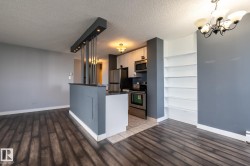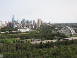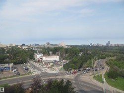 Exceptional & rare find 9th floor one bedroom condo in popular Strathcona House on prestigious Saskatchewan Drive. This excellent corner unit features a stunning open & spacious open plan with a spectacular view of city skyline (day & night), river valley, University campus & more. Bright & spacious layout wé good sized rooms, Large island kitchen with maple cabinetry, stainless steel appliances, unique counter tops, ceramic tiled and laminated floorings. oversized balcony perfect for relaxation and outdoor retreat area. Walk to UofA, downtown, Kinsman sport & rec centre, walk/bike trails just steps away. Well maintained complex with super amenities including full size fitness and social room, private courtyard with BBQ facilities, gazebo, visitor parking, insuite mail delivery & more. Condo fee includes heat, water, electricity & parking. Nice affordable starter or revenue home. ( Please note: photos shown when unit was vacant )