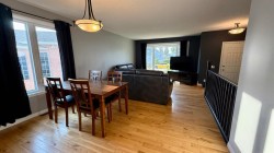 This spacious 4 bedroom, 3 bathroom home offers a great layout and is ideally located close to the pool, skating rink, rec centre and from JCC K-12 school. The beautiful kitchen has a gas stove, large island and plenty of cupboard space. Highlights include hardwood flooring, central air conditioning, central vacuum and a projector with surround sound in the basement. The large primary suite includes an ensuite with a shower. Outdoors, enjoy the huge two-tiered deck with a built-in fireplace. A double detached garage with two vehicle doors provides great storage or parking.As an added bonus the home offers quick possession and the possibility of being sold completely furnished!