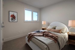 Welcome to the Juniper by Stranville Living Master Builder, a unique two-storey model located in the vibrant West Lethbridge community of Copperwood. IYKYK - this community has been the hub of the westside since 2006 and it's multiple parks, walking paths, and ponds provide the scenery and recreational opportunities not found in every neighborhood. Access to the Cavendish Farms Centre and the many restaurants and shopping is a quick trip across Whoop Up Drive, not to mention the Lethbridge LDS Temple, which is currently under construction in the same area. At just over 1,800 square feet of developed area, this 4-bedroom home is as versatile as it is beautiful, both inside and out. The main floor includes a beautifully appointed kitchen by Adora Cabinets, fully tiled backsplash, and quartz countertops for both the base cabinets and island with extended bar. Stranville Living's top tier appliance package includes a seamlessly integrated paneled Fisher & Paykel fridge, paneled dishwasher, induction cooktop, built-in hood fan, and a stainless steel wall oven and microwave combo unit. A sleek electric fireplace accents the main floor living room with a wall mounted mantle that is crisp and clean. A large sliding glass door exits onto the future deck and sits adjacent to a massive rear rake style window with park views for days. The unique element of this main floor is a flex room that can be either an office for those needing to work at home or an auxiliary bedroom with direct access to a full 4-piece bathroom, which sets up perfectly for someone with mobility issues, like an aging close relative. Upstairs, you'll find the large primary bedroom and ensuite with double vanity sinks and a lovely tiled shower. Two more bedrooms, another 4-piece bathroom, a bonus room, and laundry room complete this upper level. The oversized garage is 25' wide, sitting on a lot that is 42' wide, making this one of the largest parcels on the block. Don't forget about the high efficient mechanical equipment, Low E windows, and spray foam in the rim joists that help keep your heating and cooling costs in check. Photos may contain virtual staging.