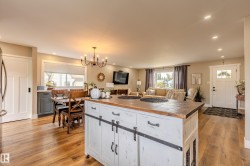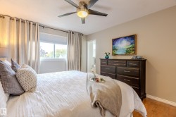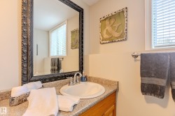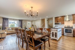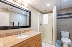 Welcome to this beautiful 4-level back split home in the heart of Morinville! Offering 5 bedrooms, 2 full bathrooms, and 2 half baths, this spacious property is perfect for growing families. Enjoy the convenience of a heated double attached garage and walking distance to all schools! The open-concept main floor is designed for entertaining, with a bright living room, dining area, and a fully renovated kitchen showcasing updated cabinets, countertops, and backsplash. Upstairs you’ll find a 4pc main bath, two generous junior bedrooms, and a primary suite complete with a private 2pc ensuite. The lower level boasts a large family room, 4th bedroom, and laundry with an additional 2pc bath. The basement is complete with a 5th bedroom, 3pc bath, and a versatile rec/storage area. Step outside to a beautifully landscaped yard featuring back lane access, a large shed, and newer fencing. Notable upgrades include 2x6 construction, furnace (2021), central A/C (2022), updated exterior (2015), newer roof, and much more!