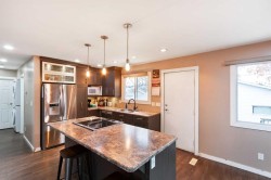 Welcome to this warm and inviting 4-bedroom, 2 full bath family home, ideally located close to schools, shopping, and amenities. With its open-concept layout and thoughtful updates throughout—including new appliances, some new flooring, and fresh paint—this home offers plenty of space for everyday living and family gatherings. The extra full kitchen in the basement is perfect for extended family, teens, or hosting celebrations. It is an illegal suite. Storage won’t be an issue, with lots of room throughout the home to stay organized.Outside, the oversized double detached heated garage with 220 amp service, built-in cabinets, and a vice that stays is a dream for hobbyists or those who need extra workspace. There’s also RV parking, plus new siding and new asphalt shingles on the house, offering great curb appeal and peace of mind.This home is also fully monitored, and all security equipment will remain—an added bonus for parents looking for safety and comfort. A wonderful opportunity in a central, convenient, and family-focused location— this could be your family’s next home!