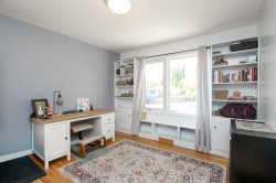 FULLY DEVELOPED 4 BEDROOM, 2 BATHROOM 1.5 STOREY IN MATURE MOUNTVIEW ~ LOCATED ON A MASSIVE DOUBLE LOT WITH MATURE LANDSCAPING ~ DETACHED GARAGE WITH A LARGE WORKSHOP ~ OVERSIZED FRONT DRIVE WITH SPACE FOR AN RV ~ West facing front veranda overlooks the front yard ~ The living room features hardwood flooring, a wood burning stove and a large west facing picture window that fills the space with natural light ~ Easily host large gatherings in the dining room that features a convenient pass through opening to the kitchen, plus garden door access to the large deck (w/ composite deck board) and backyard ~ The kitchen offers plenty of white cabinets, full tile backsplash, ample counter space, window above the sink overlooking the backyard, stainless steel appliances, tile floors and a wall pantry offering additional storage space ~ Main floor bedroom can easily accommodate a king size bed plus furniture and features hardwood flooring and a wall of built in's cabinets and shelving ~ Sunny 4 piece main bath ~ The upper level offers two large bedrooms with ample closet space and large windows, a den/flex room, and a 2 piece bathroom with an oversized vanity ~ The basement has a spacious family room with built in shelving, a generous size bedroom, laundry with a sink and folding counter, with space for storage throughout ~ The beautiful backyard is fully fenced, has tons of space, mature tress, shrubs and perennials, 2 sheds, a large upper deck, lower deck with a pergola, and tons of grassy yard space ~ Detached garage is insulated, finished with painted drywall, and has am attached workshop with built in shelving ~ Located in a mature, well established neighbourhood with easy access to great schools, parks, shopping, walking trails and more plus easy access to downtown, Red Deer Poly, and all other amenities.