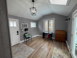 Looking for the perfect Christmas Gift? This beautiful Heritage home should be on everyone's Christmas List! So many updates throughout this incredible home which is located on a gorgeous street with Coronation Park on its doorstep! Plenty of charm as you walk up to the new south facing front covered porch with composite boards that wraps all the way around to the east of the house. The perfect place to sit with a glass of lemonade and look out towards the beautiful park. Walking into the large, amazing foyer with shiplap walls and high ceilings, you will find lots of room for cabinets and benches. The living room with feature walls and electric fireplace has south and east facing windows making it light and bright. Wide plank hardwood floors throughout the main floor! The living room flows into the large dining room with patio door to the east side deck, lovely to catch the morning sun with your first cup of coffee as you overlook the private yard with lilac, plum and apple trees! Off the dining is a gorgeous kitchen with custom kitchen cabinets, with newer appliances (2019), granite counter tops, pull outs in pantry, lots of decorative tile, plus cookbook niche. So lovely! Also on main floor is laundry room and a pretty little half bath., Plus the awesome addition which is a great flex space that can be used as a family room, or large sunny porch to sit and enjoy the sun with new glass door and windows and laminate flooring! Upstairs you will find three spacious bedrooms including the lovely primary bedroom. The family bathroom has a soaker tub and separate shower! Plus the bonus 3rd level loft can be used as an office area or 4th bedroom and has rough in for a bathroom. The basement has a rec area and potential bedroom space and plenty of storage space plus a bathroom with shower. So much on offer here including a double detached garage with gas line for roughed in heat and new door. Some of the many updates are newer roof, new porch, windows in 2019, new insulation in walls with vapour barrier to keep home cool in the summer and warm in the winter! New electrical panel and electrical wiring and plumbing. Added rebar to deck with composite boards. The list goes on . . .this incredible 1908 character home has so much charm plus all the convenience of a new home!