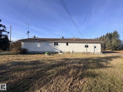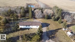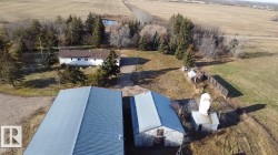 Convenient country living! This 9.74 acre parcel is located just minutes east of Bonnyville. The property is nicely landscaped with mature trees along the driveway & yard, shrubs, and gravel driveway to the house & shops. This well maintained 1500 sqft bungalow with stucco exterior offers a total of 5 bedrooms plus 3 baths, bright windows, laminate, vinyl plank and tile floors, cozy wood fireplace in the living room, main floor laundry by the back entrance to the attached double heated garage with walk up from basement. Finished basement offers large rec room with wood stove, 2 bedrooms and newer 3 pc bath and spacious cold storage room. Outside you'll find a 50x80 steel frame shop with a half bath, 3-14' doors, water heater for washing, overhead radiant heaters. 2nd older heated 40x70 steel frame shop with 2x14' overhead doors. Older barn provides additional cold storage space, lots of smaller out buildings, another barn, livestock shelter and tons of steel corals with waterers. Endless opportunities!!