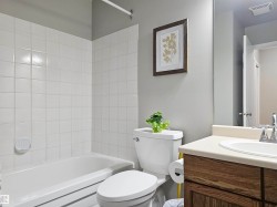 Looking for everything on your wish list? This lovely 2 story townhome condo in Gentry Lane has it all with a total of 4 beds, 3 full baths, hardwood floors, wood burning fireplace, a gorgeous new kitchen complete with new Cafe appliances, fenced yard with deck + gas hookup, heated double attached garage, A/C and fresh paint! The main floor provides a bright and cozy living space, a functional kitchen with gas stovetop and plenty of storage, spacious dining area, main floor bedroom, full bath and laundry leading to the garage. Upstairs you will find a large primary bedroom with 3pc ensuite plus 2 more generously sized bedrooms and a 4pc bath. The basement is awaiting your future plans or just use it for extra storage! Nestled just steps away from shopping, trails and transit, this beautiful home is the perfect place to plant new memories in The Gardens!