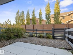 Welcome to this nearly NEW townhome in the beautiful Jensen Lakes community of St. Albert! Enjoy MAINTENANCE-FREE living just steps from the BEACH, parks, trails, dining, and theatre. This STYLISH home offers an open-concept layout with 2 bedrooms and 2.5 modern bathrooms. NATURAL LIGHT pours in through large windows, creating a warm, welcoming space for entertaining or relaxing. The SLEEK kitchen features white cabinetry, quartz countertops with a breakfast bar, and stainless-steel appliances. It flows seamlessly into the SPACIOUS living and dining areas and opens to a CHARMING upper deck. Upstairs, you'll find 2 PRIMARY SUITES—each with its own ensuite and closet—plus a convenient laundry area. The ground level includes a MASSIVE tandem garage, utility space, and access to a fenced yard and green space. Whether you're starting out or downsizing, this home is move-in ready, low maintenance, and ideally located—it truly rates a perfect 10/10!