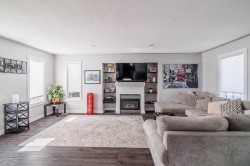 Fine Family Home in Fox Run with 5 bedrooms and 4 baths! This home on a nice Crescent is sure to please! Enjoy a beverage on the large front veranda or invite your family and friends to a summertime BBQ in the huge back yard which is very private! Step inside and you are greeted with a cozy living room with a gas fireplace. Great Kitchen with spacious cabinets, corner pantry, eating bar and a patio door to a small deck perfect for the BBQ. Main floor laundry and a 2 piece bath right off the garage entry is very functional! Loads of built in shelving in the garage for all your storage needs. Upstairs you will find a large primary bedroom with a 4 pc ensuite, 2 more nice sized bedrooms and another 4 pc bath. All bathrooms are tiled with underfloor heat! Enjoy the "chill" of the central air conditioning on those hot summer days! The family room down is perfect for entertaining and you will also find 2 more bedrooms and another bath! This plumber built home also features on demand hot water system, high efficiency furnace, and in floor heat in the basement. Upgrades include a newer fridge and stove, hot water system and the shingles were done about 3 years ago. A few extras to off the list with 2 sheds, parking pad, play structure, trampoline and a central vac.