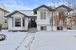 This home offers a practical layout suited for day-to-day living. Situated on a cul-de-sac and features immediate backyard access to a spacious, heated 28' by 26' detached garage with convenient back alley entry and additional adjacent parking. The main floor offers high ceilings, an electric fireplace in the living room, and an open kitchen with a floating island and backyard views, while the upper floor provides three bedrooms and two full bathrooms. Functionality continues on the lower levels, which include a large rec room with 9-foot ceilings, the home's third full bathroom, and laundry, plus two extra rooms and storage in the basement. The fully-fenced backyard enhances outdoor living with a greenhouse and hot and cold water taps.