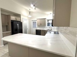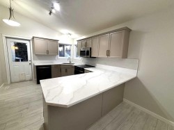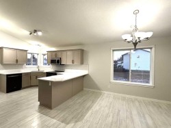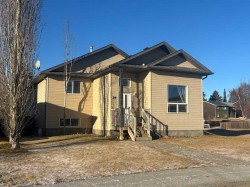 "2008 HILLTOP HOME - PRIME LOCATION !!" This 2008 built bi-level offers a beautiful open floor plan and is located at the end of a cul-de-sac in a family friendly hilltop neighborhood. The large kitchen has new quartz countertops, large pantry, tiled backsplash and plenty of cabinets and counterspace. The adjacent dining area is extra large. The kitchen and dining area are open to and overlook the huge 15'x12' living room. The primary bedroom offers a walk-in closet and has its own 3 piece ensuite . There is a full 4 piece bathroom and 2 more bedrooms on the main level as well. On the lower level, there is a massive 24'x12' partially finished family room , laundry /utility room, 2 framed future bedrooms, and a large closed-in storage area. All the flooring (except bathrooms) has been replaced with durable laminate flooring, no carpet at all , and the fridge, stove and dishwasher are only 1 year old. This home has a fenced back yard and a convenient 14'x12' covered back deck, accessible from the kitchen or back yard. There is back alley access , this home is close to the hospital and schools and Centennial Park. Great option if you're looking for a more affordable newer home .