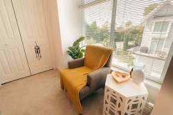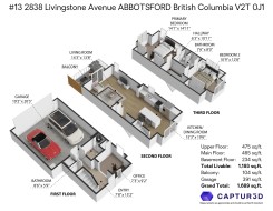 A bright 3-storey, two-bedroom, two-bath townhome designed for modern living. (1,284 sqft via Strata Plan + 414 sqft garage) Unit 13 at Gardner by Mosaic, the entry level offers a versatile den ideal for a home office. Upstairs, soaring 10-foot main-floor ceilings, oversized windows, and light finishes make theopen living space feel airy and inviting. The kitchen impresses with sleek grey cabinetry, quartz counters, stainless steel appliances, and an oversizedisland for casual meals or entertaining. Two spacious bedrooms share a stylish Jack-and-Jill bathroom. Side-by-side double garage and full-lengthdriveway — 4 PARKING SPOTS. Pet-friendly Gardner Park, with easy access to Highstreet shops and Highway 1, combines comfort, convenience, and one of the best values in the complex.