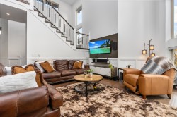 Quality & craftsmanship define this spectacular Eagle Mountain home! Set on ¼ acre greenbelt lot with stunning views and exceptional privacy, this 6,600sqft home features 5–6 bedrooms, 5 baths, and 2 offices across three luxurious levels. The open-concept gourmet kitchen is a chef’s dream, while the great room has 20-ft ceilings and floor to ceiling windows to capture the spectacular views. Primary suite on main and a second primary upstairs, both with a spa-like ensuites. The lower level offers a games room with wet bar, gym, rec room, and theatre wired for 7-zone sound. Outdoor living at its best with multiple patios, rooftop deck, and parking for 8 cars & RV/boat. A triple garage and roughed-in elevator complete this masterpiece! Within a short wall to Irene Kelleher school and park.