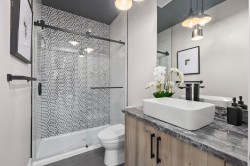 Exceptional craftsmanship and value in Abbotsford. The Aspen is one of only two homes in the boutique Silvertree collection, proudly built by Azure. This rare 6-bedroom, 4 full bathroom home offers a functional family layout with 4 bedrooms up, including a luxurious primary suite with built-in closets and a spa-inspired 5-piece ensuite featuring mosaic marble floors and walls. Enjoy hypoallergenic waterproof laminate flooring, designer fixtures, and refined finishes throughout. The chef’s kitchen impresses with an oversized island, marble backsplash, quartz counters, Maple Shaker and Eco-slab cabinetry, and premium Italian Fulgor Milano appliances. Complete with double garage, roughed-in daylit basement suite with private access, low-maintenance landscaping, and a play yard. Must be seen!