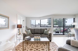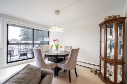Bright and spacious fully renovated unit ready for you to enjoy! With large kitchen & island, SS appliances, quartz counters, tile backsplash, and ample cupboard space. Living room features large windows w/ custom blinds and a view of Mt. Baker from your covered deck, spacious dining area perfect for entertaining. Bedroom features walk in closet. Second bed/den with french doors leading to living rm. Unit includes modern light fixtures, all new interior doors/trim, and new flooring throughout. New Bathroom with walk-in shower & waterproof flooring. New In suite Washer/dryer. Storage locker inc. Evergreen Village also has indoor pool, hot tub, gym, guest suite, games rm, workshop, & RV parking. Centrally located near shops, restaurants, parks, and transportation. Heat inc in strata fee.